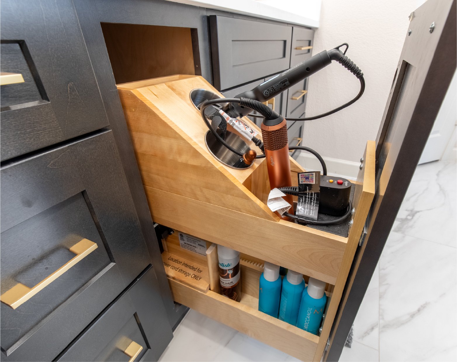 Clutter shrinks a room instantly. Smart storage makes a small bathroom feel intentional rather than cramped.