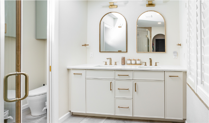 Your mirror is a crucial part of your vanity setup. It should complement the size and shape of your vanity—and your design style.