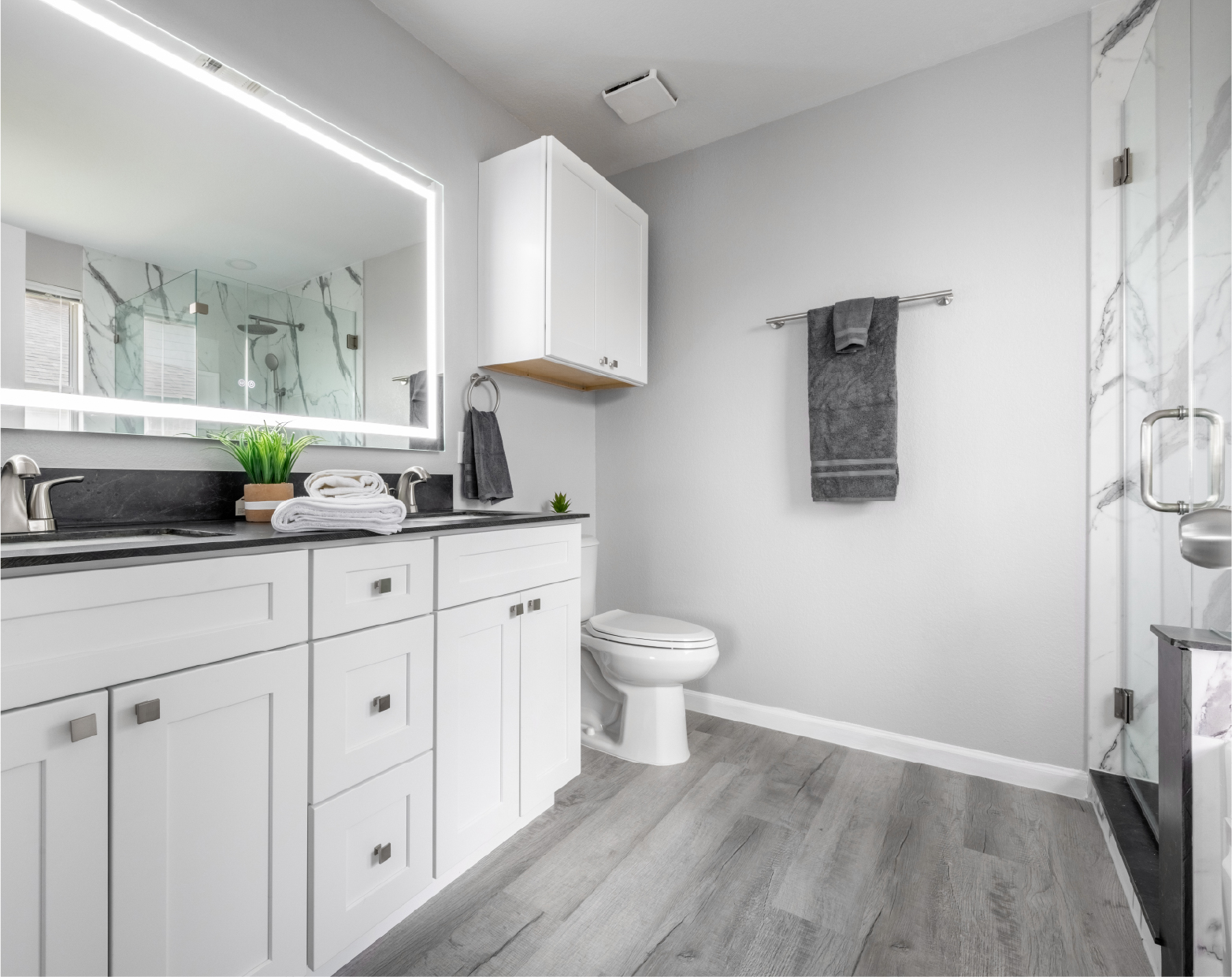The materials you choose will set the tone for your bathroom’s upkeep. Select finishes that resist water, grime, and mold.