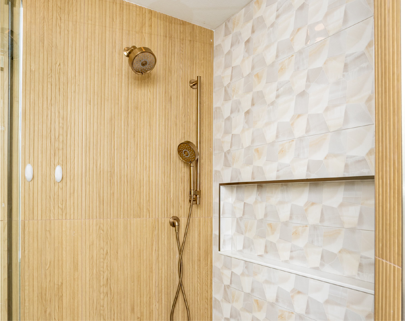 - Large-format tiles or solid surfaces: Fewer grout lines mean fewer places for mold and mildew to grow. Consider porcelain or ceramic for walls and floors.