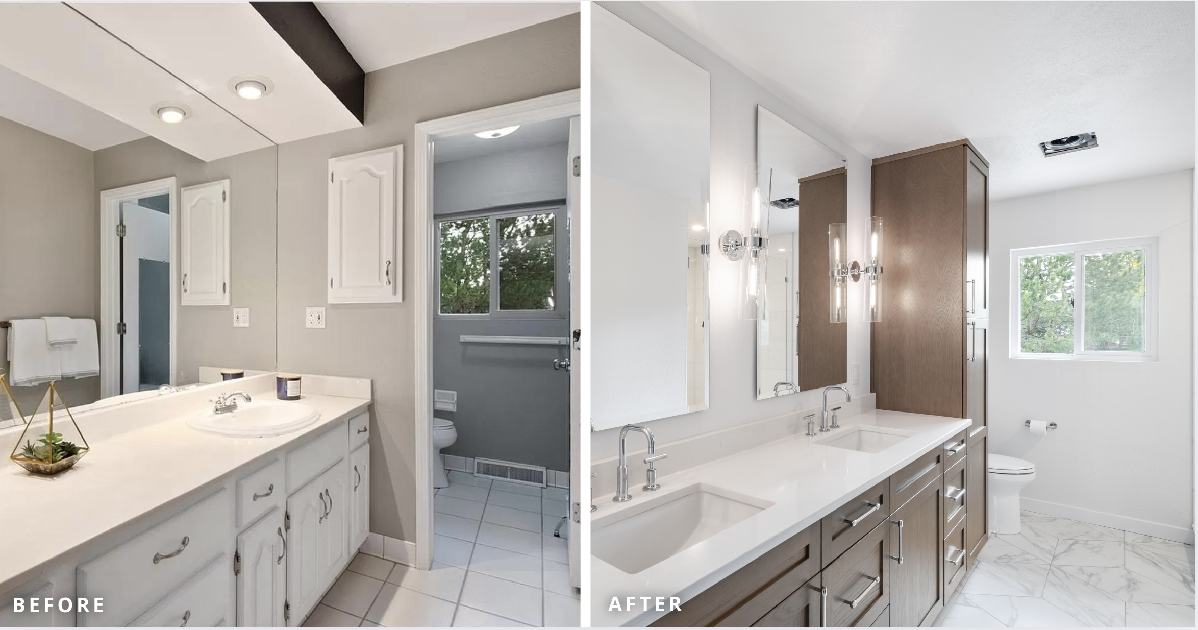 Upgrading key elements in a bathroom—like faucets, vanities, and lighting—reduces wear and tear issues that lead to frequent repair requests. Low-maintenance, high-durability materials keep costs down and prevent recurring issues like leaks, mold buildup, or cracked tile.