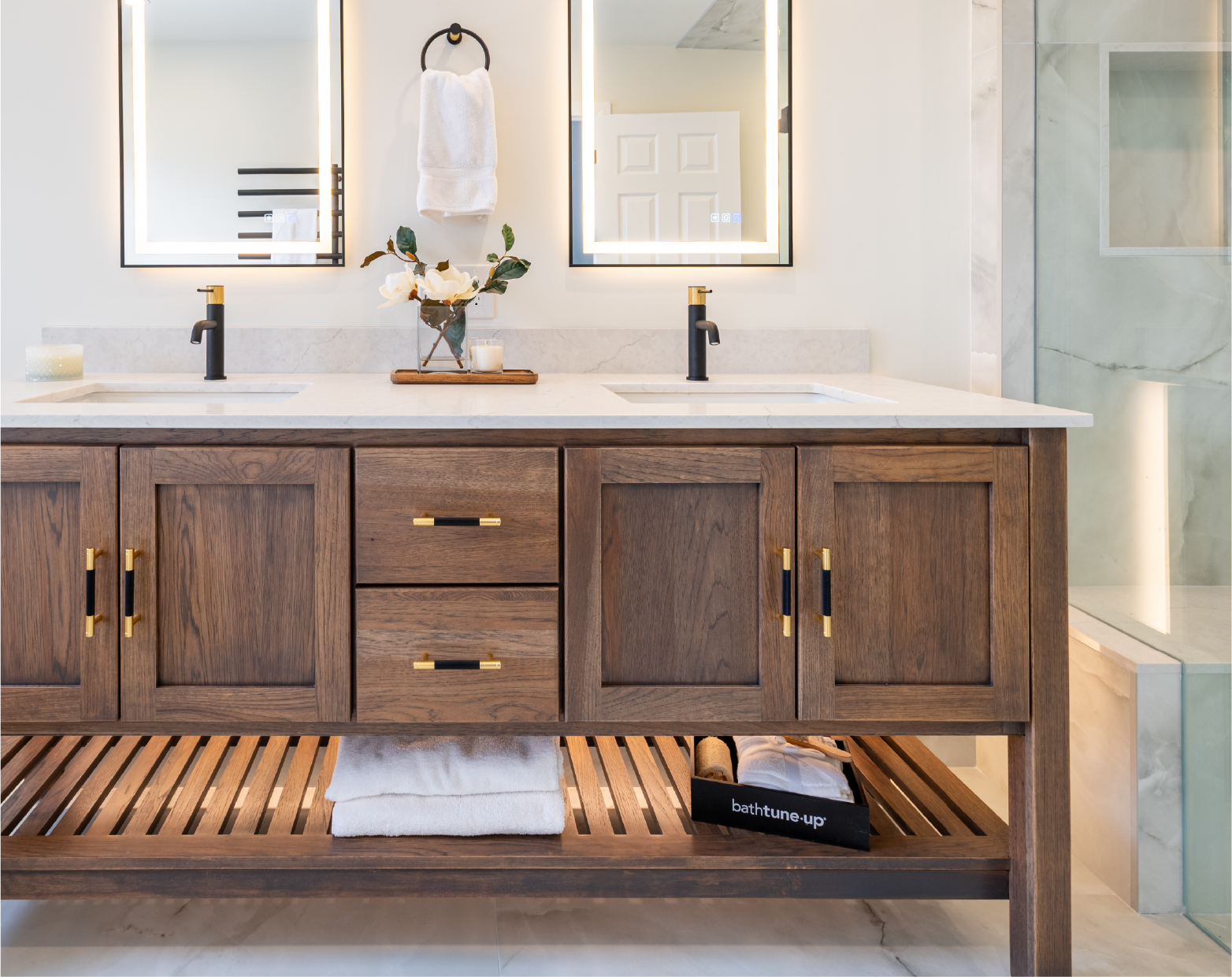 Building your perfect bathroom vanity is about blending form and function in a way that fits your life and your style. Take the time to plan each element—from the cabinet color to the countertop finish—and you’ll end up with a space that’s both beautiful and practical. Whether you're creating a serene spa-like retreat or a bold design statement, the right vanity can transform your entire bathroom. Ready to update your vanity? Contact your local Bath Tune-Up today for a free consultation!