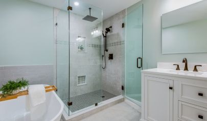 Opt for a clear glass shower enclosure; avoid bulky frames or heavy curtains.